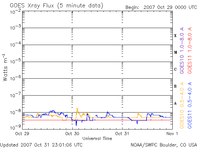 The operational data in the graph above has been modified to remove the scaling factor that has been applied by the Space Weather Prediction Center (SWPC). Because of the SWPC scaling factor in the operational data, flare indices for the operational data were reported as 42% smaller than for the science quality data. The scaling factor has also been removed from the solar flare list to reflect the true physical units.