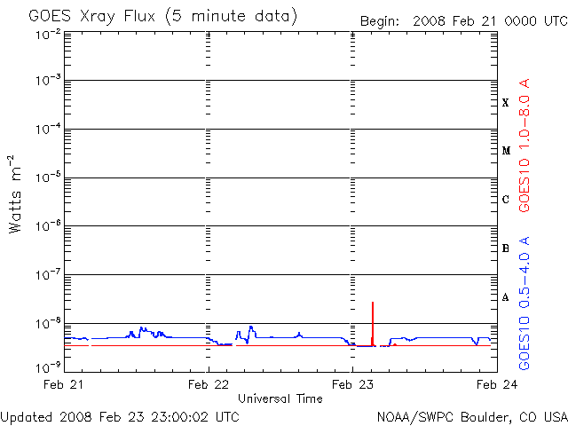 The operational data in the graph above has been modified to remove the scaling factor that has been applied by the Space Weather Prediction Center (SWPC). Because of the SWPC scaling factor in the operational data, flare indices for the operational data were reported as 42% smaller than for the science quality data. The scaling factor has also been removed from the solar flare list to reflect the true physical units.