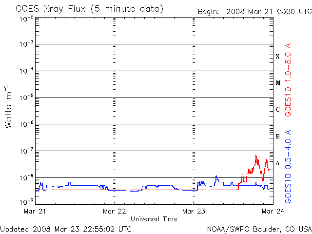 The operational data in the graph above has been modified to remove the scaling factor that has been applied by the Space Weather Prediction Center (SWPC). Because of the SWPC scaling factor in the operational data, flare indices for the operational data were reported as 42% smaller than for the science quality data. The scaling factor has also been removed from the solar flare list to reflect the true physical units.