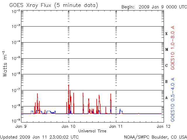 The operational data in the graph above has been modified to remove the scaling factor that has been applied by the Space Weather Prediction Center (SWPC). Because of the SWPC scaling factor in the operational data, flare indices for the operational data were reported as 42% smaller than for the science quality data. The scaling factor has also been removed from the solar flare list to reflect the true physical units.