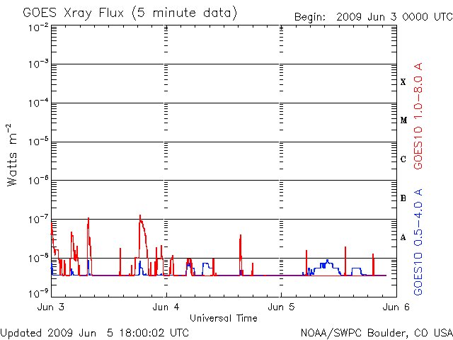 The operational data in the graph above has been modified to remove the scaling factor that has been applied by the Space Weather Prediction Center (SWPC). Because of the SWPC scaling factor in the operational data, flare indices for the operational data were reported as 42% smaller than for the science quality data. The scaling factor has also been removed from the solar flare list to reflect the true physical units.