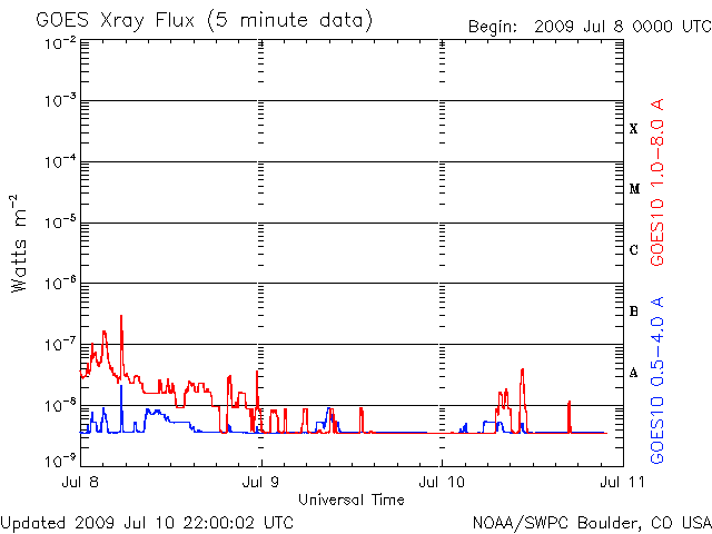 The operational data in the graph above has been modified to remove the scaling factor that has been applied by the Space Weather Prediction Center (SWPC). Because of the SWPC scaling factor in the operational data, flare indices for the operational data were reported as 42% smaller than for the science quality data. The scaling factor has also been removed from the solar flare list to reflect the true physical units.