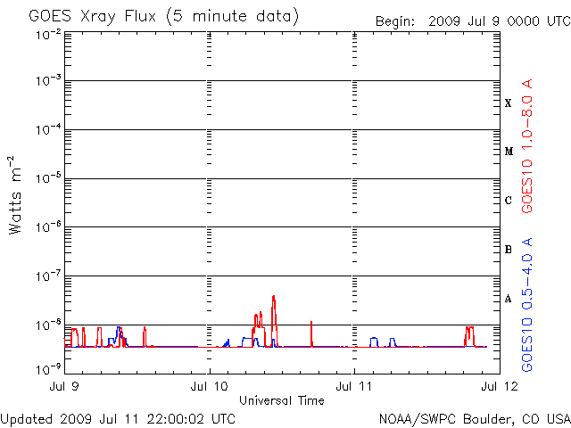 The operational data in the graph above has been modified to remove the scaling factor that has been applied by the Space Weather Prediction Center (SWPC). Because of the SWPC scaling factor in the operational data, flare indices for the operational data were reported as 42% smaller than for the science quality data. The scaling factor has also been removed from the solar flare list to reflect the true physical units.