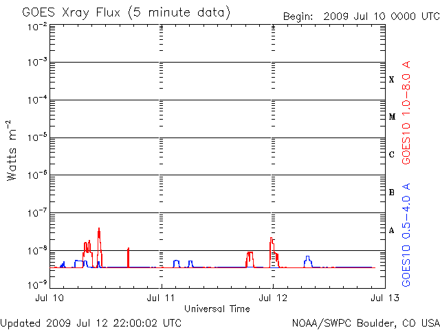 The operational data in the graph above has been modified to remove the scaling factor that has been applied by the Space Weather Prediction Center (SWPC). Because of the SWPC scaling factor in the operational data, flare indices for the operational data were reported as 42% smaller than for the science quality data. The scaling factor has also been removed from the solar flare list to reflect the true physical units.