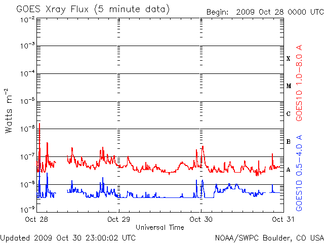 The operational data in the graph above has been modified to remove the scaling factor that has been applied by the Space Weather Prediction Center (SWPC). Because of the SWPC scaling factor in the operational data, flare indices for the operational data were reported as 42% smaller than for the science quality data. The scaling factor has also been removed from the solar flare list to reflect the true physical units.