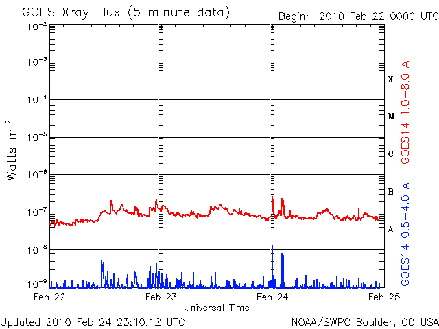 The operational data in the graph above has been modified to remove the scaling factor that has been applied by the Space Weather Prediction Center (SWPC). Because of the SWPC scaling factor in the operational data, flare indices for the operational data were reported as 42% smaller than for the science quality data. The scaling factor has also been removed from the solar flare list to reflect the true physical units.