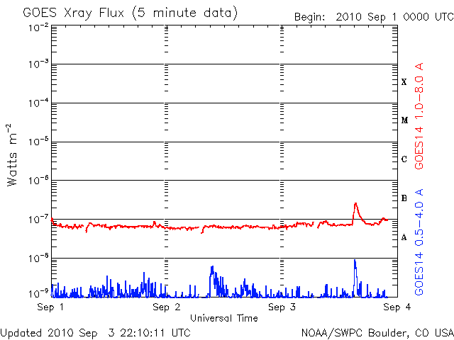 The operational data in the graph above has been modified to remove the scaling factor that has been applied by the Space Weather Prediction Center (SWPC). Because of the SWPC scaling factor in the operational data, flare indices for the operational data were reported as 42% smaller than for the science quality data. The scaling factor has also been removed from the solar flare list to reflect the true physical units.