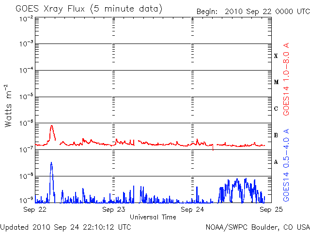 The operational data in the graph above has been modified to remove the scaling factor that has been applied by the Space Weather Prediction Center (SWPC). Because of the SWPC scaling factor in the operational data, flare indices for the operational data were reported as 42% smaller than for the science quality data. The scaling factor has also been removed from the solar flare list to reflect the true physical units.