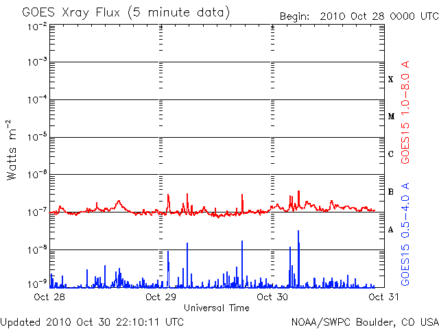 The operational data in the graph above has been modified to remove the scaling factor that has been applied by the Space Weather Prediction Center (SWPC). Because of the SWPC scaling factor in the operational data, flare indices for the operational data were reported as 42% smaller than for the science quality data. The scaling factor has also been removed from the solar flare list to reflect the true physical units.