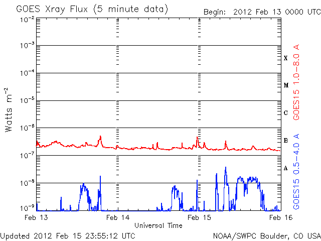 The operational data in the graph above has been modified to remove the scaling factor that has been applied by the Space Weather Prediction Center (SWPC). Because of the SWPC scaling factor in the operational data, flare indices for the operational data were reported as 42% smaller than for the science quality data. The scaling factor has also been removed from the solar flare list to reflect the true physical units.