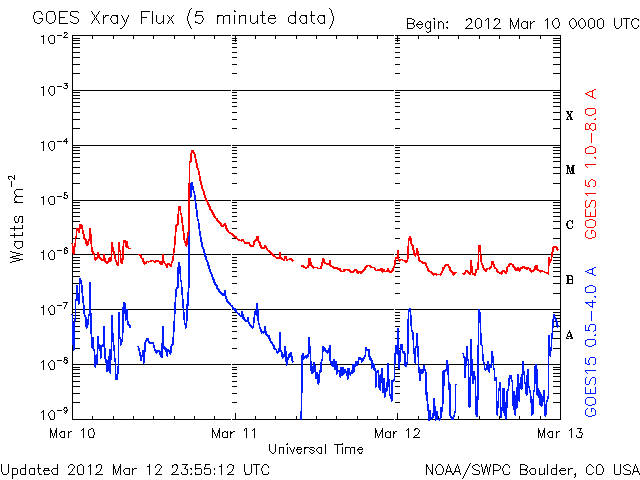 The operational data in the graph above has been modified to remove the scaling factor that has been applied by the Space Weather Prediction Center (SWPC). Because of the SWPC scaling factor in the operational data, flare indices for the operational data were reported as 42% smaller than for the science quality data. The scaling factor has also been removed from the solar flare list to reflect the true physical units.