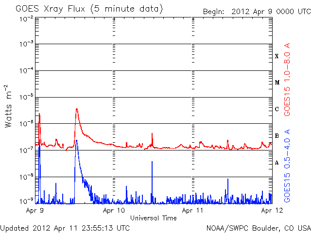 The operational data in the graph above has been modified to remove the scaling factor that has been applied by the Space Weather Prediction Center (SWPC). Because of the SWPC scaling factor in the operational data, flare indices for the operational data were reported as 42% smaller than for the science quality data. The scaling factor has also been removed from the solar flare list to reflect the true physical units.