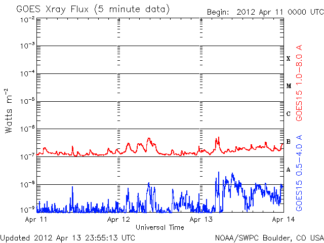 The operational data in the graph above has been modified to remove the scaling factor that has been applied by the Space Weather Prediction Center (SWPC). Because of the SWPC scaling factor in the operational data, flare indices for the operational data were reported as 42% smaller than for the science quality data. The scaling factor has also been removed from the solar flare list to reflect the true physical units.