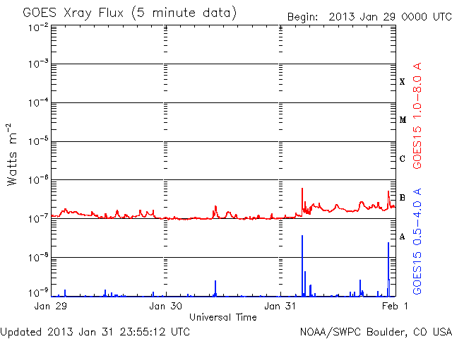 The operational data in the graph above has been modified to remove the scaling factor that has been applied by the Space Weather Prediction Center (SWPC). Because of the SWPC scaling factor in the operational data, flare indices for the operational data were reported as 42% smaller than for the science quality data. The scaling factor has also been removed from the solar flare list to reflect the true physical units.