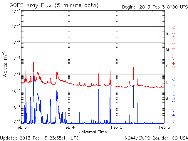 The operational data in the graph above has been modified to remove the scaling factor that has been applied by the Space Weather Prediction Center (SWPC). Because of the SWPC scaling factor in the operational data, flare indices for the operational data were reported as 42% smaller than for the science quality data. The scaling factor has also been removed from the solar flare list to reflect the true physical units.