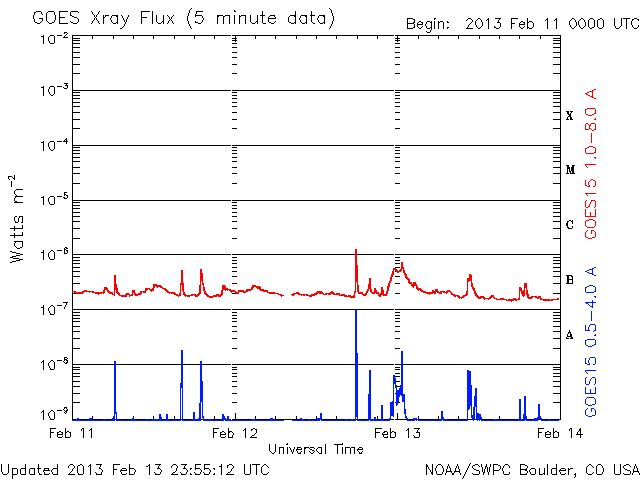 The operational data in the graph above has been modified to remove the scaling factor that has been applied by the Space Weather Prediction Center (SWPC). Because of the SWPC scaling factor in the operational data, flare indices for the operational data were reported as 42% smaller than for the science quality data. The scaling factor has also been removed from the solar flare list to reflect the true physical units.