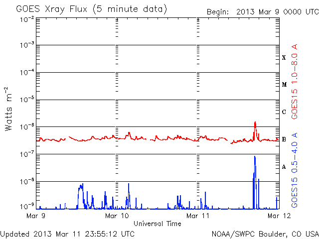 The operational data in the graph above has been modified to remove the scaling factor that has been applied by the Space Weather Prediction Center (SWPC). Because of the SWPC scaling factor in the operational data, flare indices for the operational data were reported as 42% smaller than for the science quality data. The scaling factor has also been removed from the solar flare list to reflect the true physical units.