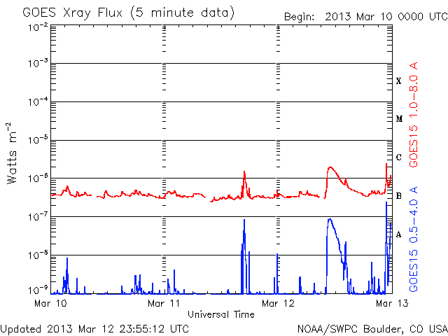 The operational data in the graph above has been modified to remove the scaling factor that has been applied by the Space Weather Prediction Center (SWPC). Because of the SWPC scaling factor in the operational data, flare indices for the operational data were reported as 42% smaller than for the science quality data. The scaling factor has also been removed from the solar flare list to reflect the true physical units.