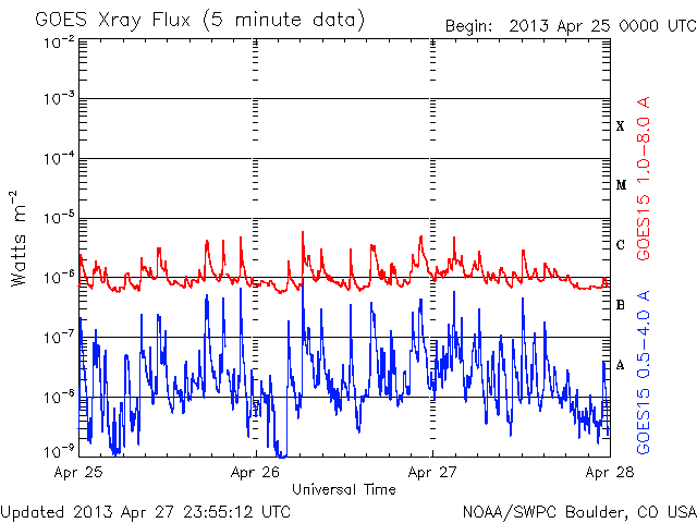 The operational data in the graph above has been modified to remove the scaling factor that has been applied by the Space Weather Prediction Center (SWPC). Because of the SWPC scaling factor in the operational data, flare indices for the operational data were reported as 42% smaller than for the science quality data. The scaling factor has also been removed from the solar flare list to reflect the true physical units.