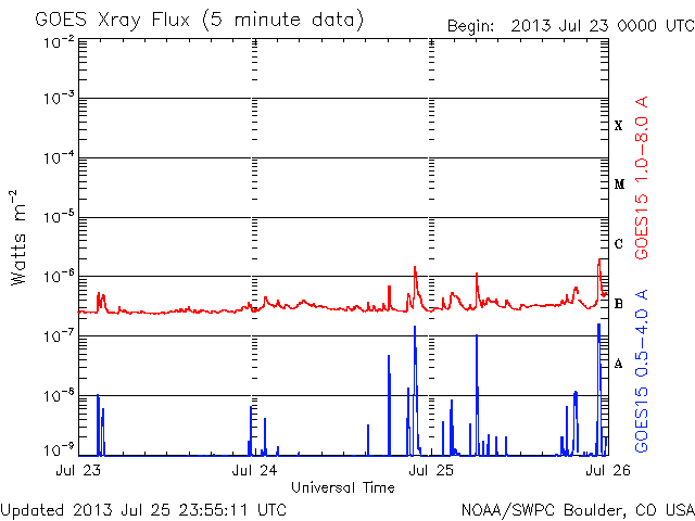 The operational data in the graph above has been modified to remove the scaling factor that has been applied by the Space Weather Prediction Center (SWPC). Because of the SWPC scaling factor in the operational data, flare indices for the operational data were reported as 42% smaller than for the science quality data. The scaling factor has also been removed from the solar flare list to reflect the true physical units.