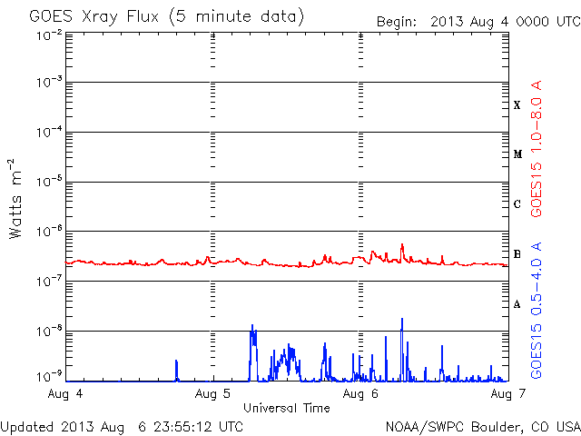The operational data in the graph above has been modified to remove the scaling factor that has been applied by the Space Weather Prediction Center (SWPC). Because of the SWPC scaling factor in the operational data, flare indices for the operational data were reported as 42% smaller than for the science quality data. The scaling factor has also been removed from the solar flare list to reflect the true physical units.