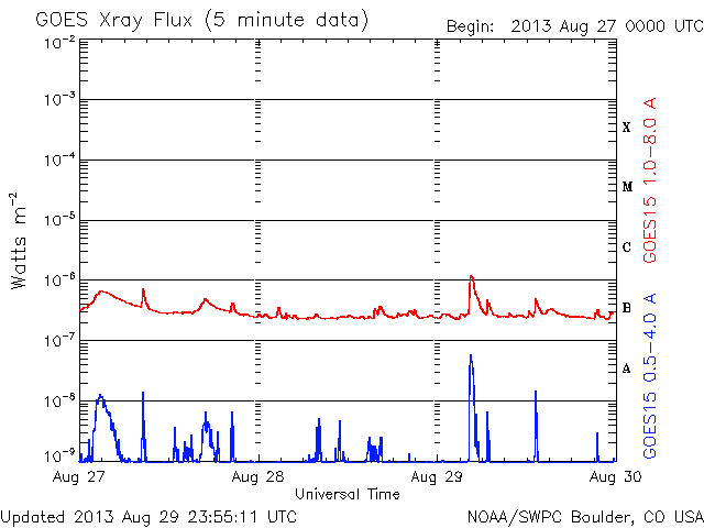 The operational data in the graph above has been modified to remove the scaling factor that has been applied by the Space Weather Prediction Center (SWPC). Because of the SWPC scaling factor in the operational data, flare indices for the operational data were reported as 42% smaller than for the science quality data. The scaling factor has also been removed from the solar flare list to reflect the true physical units.