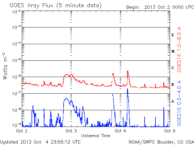 The operational data in the graph above has been modified to remove the scaling factor that has been applied by the Space Weather Prediction Center (SWPC). Because of the SWPC scaling factor in the operational data, flare indices for the operational data were reported as 42% smaller than for the science quality data. The scaling factor has also been removed from the solar flare list to reflect the true physical units.