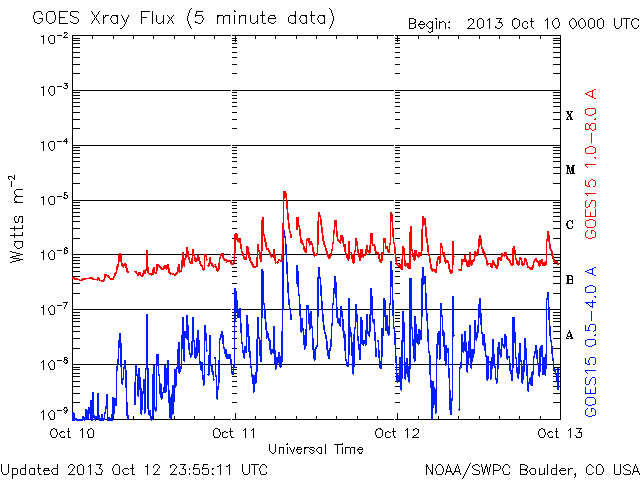 The operational data in the graph above has been modified to remove the scaling factor that has been applied by the Space Weather Prediction Center (SWPC). Because of the SWPC scaling factor in the operational data, flare indices for the operational data were reported as 42% smaller than for the science quality data. The scaling factor has also been removed from the solar flare list to reflect the true physical units.