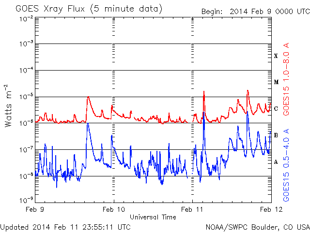 The operational data in the graph above has been modified to remove the scaling factor that has been applied by the Space Weather Prediction Center (SWPC). Because of the SWPC scaling factor in the operational data, flare indices for the operational data were reported as 42% smaller than for the science quality data. The scaling factor has also been removed from the solar flare list to reflect the true physical units.