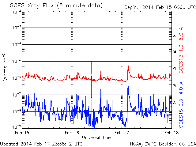 The operational data in the graph above has been modified to remove the scaling factor that has been applied by the Space Weather Prediction Center (SWPC). Because of the SWPC scaling factor in the operational data, flare indices for the operational data were reported as 42% smaller than for the science quality data. The scaling factor has also been removed from the solar flare list to reflect the true physical units.