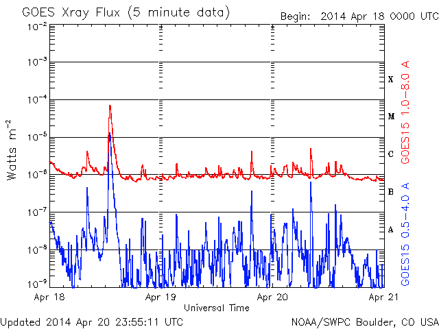 The operational data in the graph above has been modified to remove the scaling factor that has been applied by the Space Weather Prediction Center (SWPC). Because of the SWPC scaling factor in the operational data, flare indices for the operational data were reported as 42% smaller than for the science quality data. The scaling factor has also been removed from the solar flare list to reflect the true physical units.
