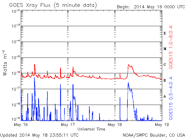 The operational data in the graph above has been modified to remove the scaling factor that has been applied by the Space Weather Prediction Center (SWPC). Because of the SWPC scaling factor in the operational data, flare indices for the operational data were reported as 42% smaller than for the science quality data. The scaling factor has also been removed from the solar flare list to reflect the true physical units.