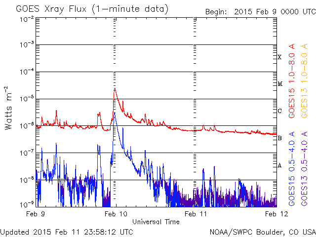 The operational data in the graph above has been modified to remove the scaling factor that has been applied by the Space Weather Prediction Center (SWPC). Because of the SWPC scaling factor in the operational data, flare indices for the operational data were reported as 42% smaller than for the science quality data. The scaling factor has also been removed from the solar flare list to reflect the true physical units.
