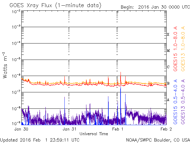 The operational data in the graph above has been modified to remove the scaling factor that has been applied by the Space Weather Prediction Center (SWPC). Because of the SWPC scaling factor in the operational data, flare indices for the operational data were reported as 42% smaller than for the science quality data. The scaling factor has also been removed from the solar flare list to reflect the true physical units.