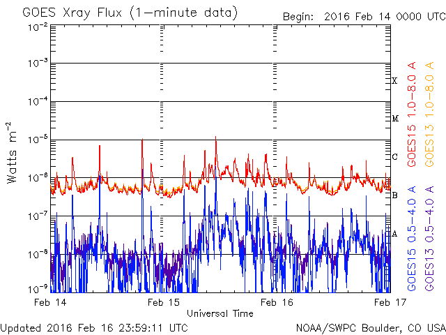 The operational data in the graph above has been modified to remove the scaling factor that has been applied by the Space Weather Prediction Center (SWPC). Because of the SWPC scaling factor in the operational data, flare indices for the operational data were reported as 42% smaller than for the science quality data. The scaling factor has also been removed from the solar flare list to reflect the true physical units.