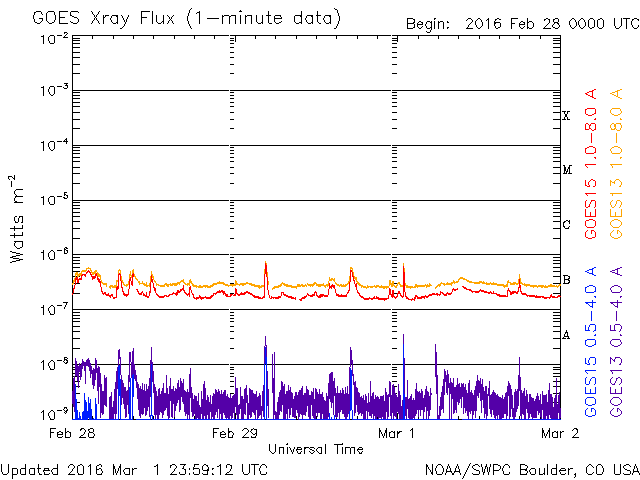 The operational data in the graph above has been modified to remove the scaling factor that has been applied by the Space Weather Prediction Center (SWPC). Because of the SWPC scaling factor in the operational data, flare indices for the operational data were reported as 42% smaller than for the science quality data. The scaling factor has also been removed from the solar flare list to reflect the true physical units.