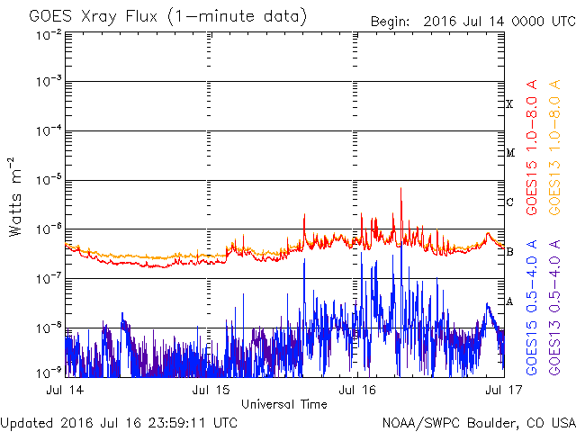 The operational data in the graph above has been modified to remove the scaling factor that has been applied by the Space Weather Prediction Center (SWPC). Because of the SWPC scaling factor in the operational data, flare indices for the operational data were reported as 42% smaller than for the science quality data. The scaling factor has also been removed from the solar flare list to reflect the true physical units.