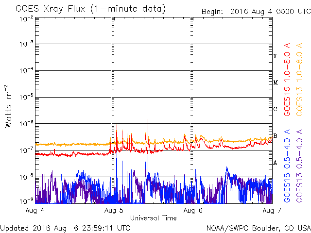The operational data in the graph above has been modified to remove the scaling factor that has been applied by the Space Weather Prediction Center (SWPC). Because of the SWPC scaling factor in the operational data, flare indices for the operational data were reported as 42% smaller than for the science quality data. The scaling factor has also been removed from the solar flare list to reflect the true physical units.