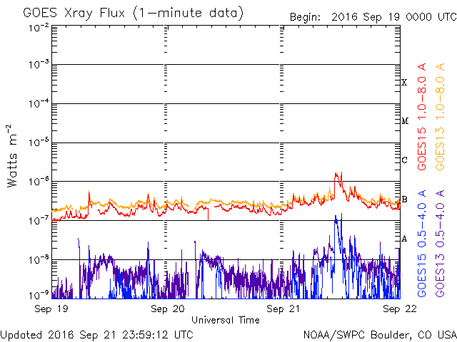 The operational data in the graph above has been modified to remove the scaling factor that has been applied by the Space Weather Prediction Center (SWPC). Because of the SWPC scaling factor in the operational data, flare indices for the operational data were reported as 42% smaller than for the science quality data. The scaling factor has also been removed from the solar flare list to reflect the true physical units.
