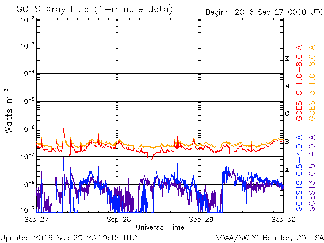 The operational data in the graph above has been modified to remove the scaling factor that has been applied by the Space Weather Prediction Center (SWPC). Because of the SWPC scaling factor in the operational data, flare indices for the operational data were reported as 42% smaller than for the science quality data. The scaling factor has also been removed from the solar flare list to reflect the true physical units.