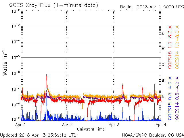 The operational data in the graph above has been modified to remove the scaling factor that has been applied by the Space Weather Prediction Center (SWPC). Because of the SWPC scaling factor in the operational data, flare indices for the operational data were reported as 42% smaller than for the science quality data. The scaling factor has also been removed from the solar flare list to reflect the true physical units.