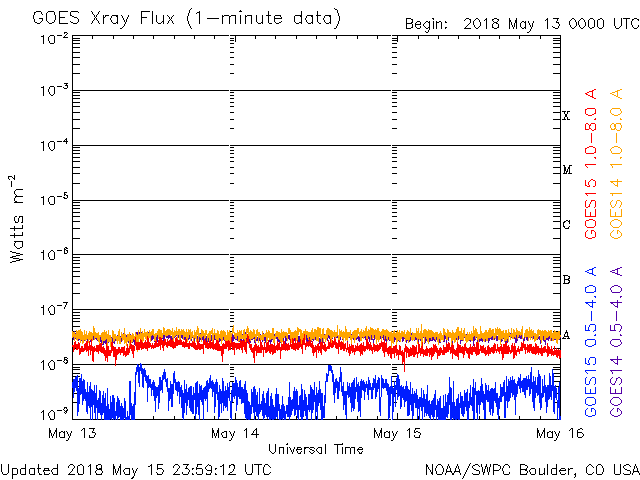 The operational data in the graph above has been modified to remove the scaling factor that has been applied by the Space Weather Prediction Center (SWPC). Because of the SWPC scaling factor in the operational data, flare indices for the operational data were reported as 42% smaller than for the science quality data. The scaling factor has also been removed from the solar flare list to reflect the true physical units.
