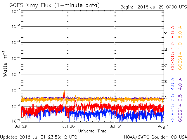 The operational data in the graph above has been modified to remove the scaling factor that has been applied by the Space Weather Prediction Center (SWPC). Because of the SWPC scaling factor in the operational data, flare indices for the operational data were reported as 42% smaller than for the science quality data. The scaling factor has also been removed from the solar flare list to reflect the true physical units.