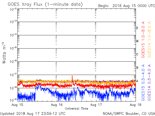 The operational data in the graph above has been modified to remove the scaling factor that has been applied by the Space Weather Prediction Center (SWPC). Because of the SWPC scaling factor in the operational data, flare indices for the operational data were reported as 42% smaller than for the science quality data. The scaling factor has also been removed from the solar flare list to reflect the true physical units.