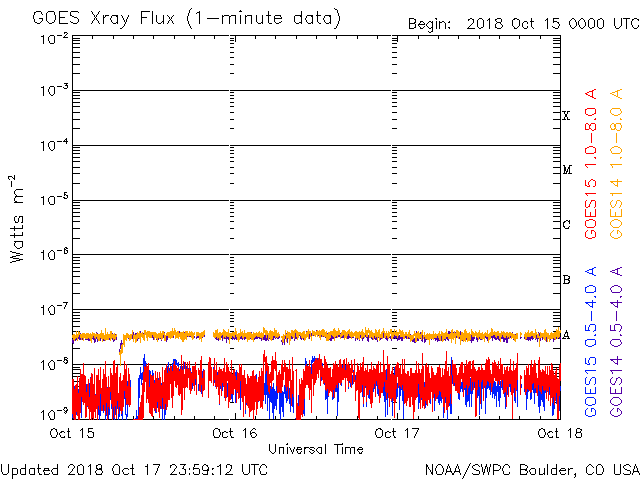 The operational data in the graph above has been modified to remove the scaling factor that has been applied by the Space Weather Prediction Center (SWPC). Because of the SWPC scaling factor in the operational data, flare indices for the operational data were reported as 42% smaller than for the science quality data. The scaling factor has also been removed from the solar flare list to reflect the true physical units.