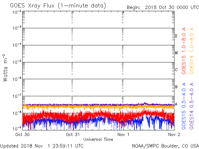 The operational data in the graph above has been modified to remove the scaling factor that has been applied by the Space Weather Prediction Center (SWPC). Because of the SWPC scaling factor in the operational data, flare indices for the operational data were reported as 42% smaller than for the science quality data. The scaling factor has also been removed from the solar flare list to reflect the true physical units.