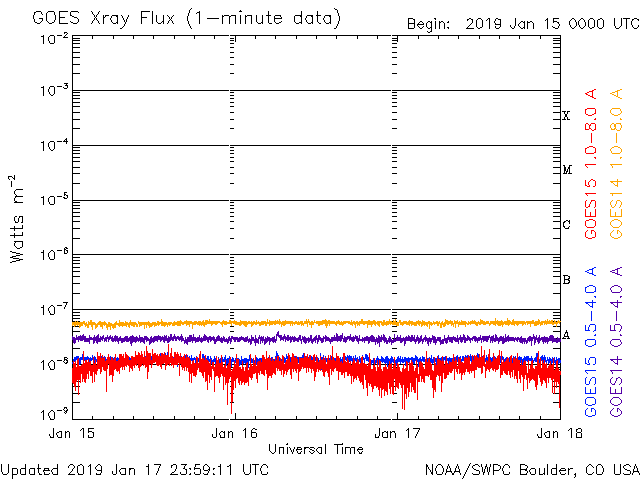 The operational data in the graph above has been modified to remove the scaling factor that has been applied by the Space Weather Prediction Center (SWPC). Because of the SWPC scaling factor in the operational data, flare indices for the operational data were reported as 42% smaller than for the science quality data. The scaling factor has also been removed from the solar flare list to reflect the true physical units.