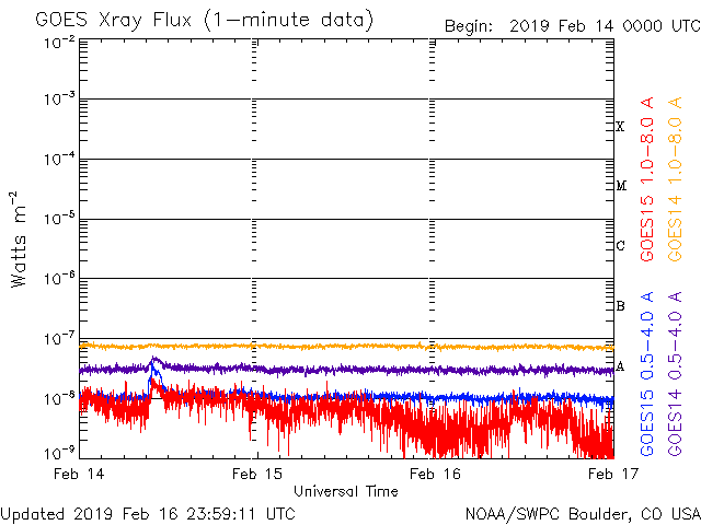 The operational data in the graph above has been modified to remove the scaling factor that has been applied by the Space Weather Prediction Center (SWPC). Because of the SWPC scaling factor in the operational data, flare indices for the operational data were reported as 42% smaller than for the science quality data. The scaling factor has also been removed from the solar flare list to reflect the true physical units.