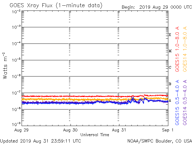 The operational data in the graph above has been modified to remove the scaling factor that has been applied by the Space Weather Prediction Center (SWPC). Because of the SWPC scaling factor in the operational data, flare indices for the operational data were reported as 42% smaller than for the science quality data. The scaling factor has also been removed from the solar flare list to reflect the true physical units.