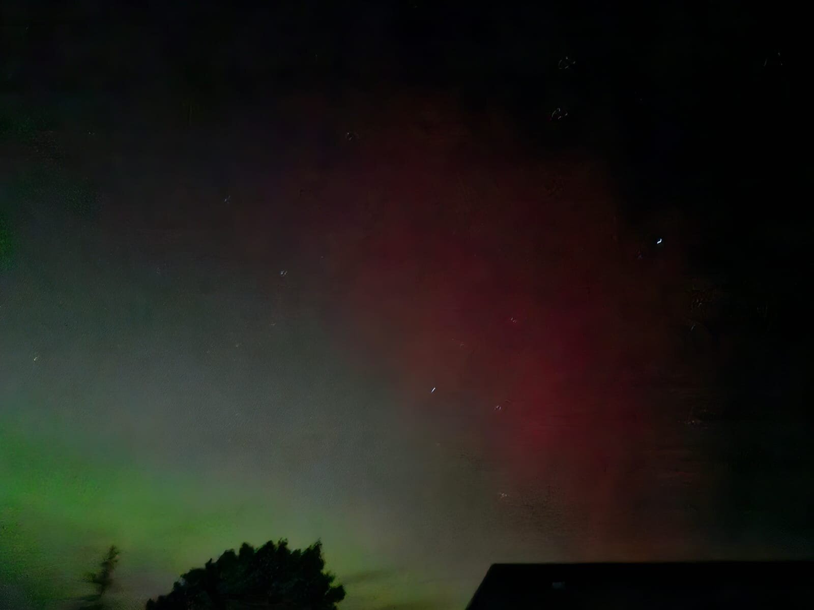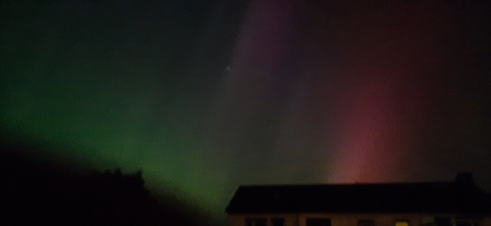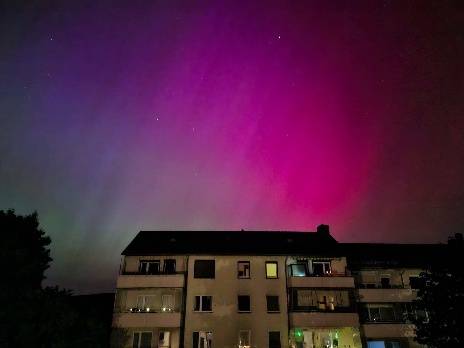 We were amazed by a neighbor's status update of a photo of the Nothern Lights and then we went out on our balcony. At first, the Nothern Lights were only visible to the naked eye as a wisp of mist, but clearly recognizable in the photo on the phone. Then it got stronger, so that we could even see it with our own eyes. What an experience, here in northern central Germany!